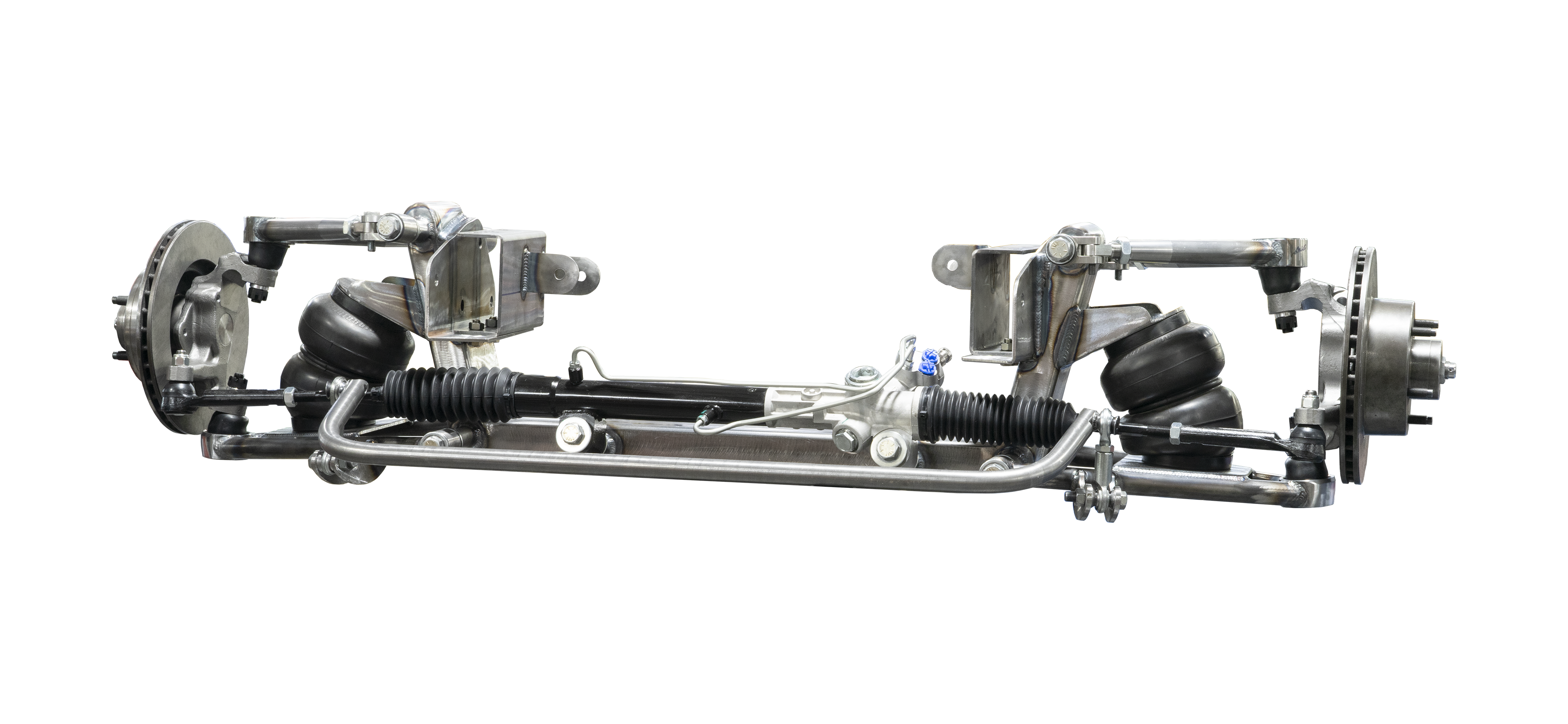 Every Scott’s Hotrods IFS comes with a lifetime guarantee, built from premium American-sourced materials. All A-Arms and Link Bars use 1-1/8”x1/4” DOM tubing, machined for full-thread engagement with in-house CNC stainless steel rod ends. Crossmembers and frame rails are 2”x4”x3/16” wall tubing, 100% TIG welded for unmatched strength—and yes, TIG welds look amazing too.